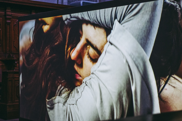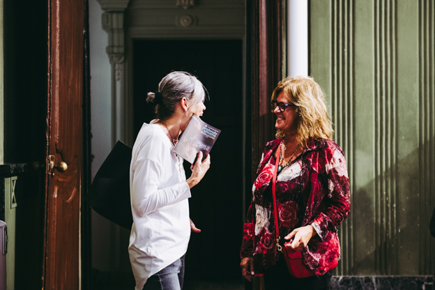 Il programma si è aperto con la mostra Baccanti, video-installazione di Emma Scarafiotti a cura di Jacopo Di Marco, in collaborazione con Lunetta11. Un viaggio tra cinema e coreografia che indaga il femminile come forza primitiva e sovversiva, evocando le Menadi del culto dionisiaco per immaginare una femminilità ibrida e post-umana.
