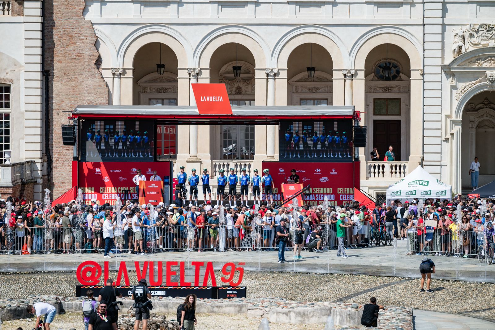 Dopo il prologo odierno, i riflettori si spostano su Alba, che domani – domenica 24 agosto – accoglierà la partenza della seconda tappa. La città sta completando in queste ore l’allestimento dell’area di partenza in piazza Medford e lungo le vie centrali: transenne, palco, villaggio del ciclismo e maxi-schermi vestiranno Alba con i colori della Vuelta, trasformandola in cuore pulsante dell’evento.