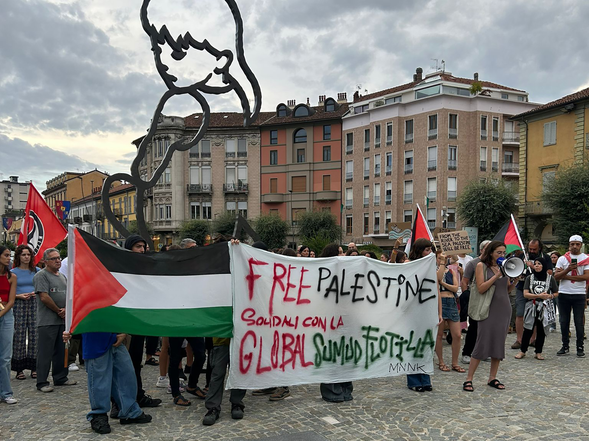 ALBA – Giovedì 4 settembre il centro storico di Alba è stato attraversato da un corteo che ha visto la partecipazione di oltre un centinaio di persone, scese in strada per esprimere sostegno alla Global Sumud Flotilla e manifestare contro la guerra a Gaza.