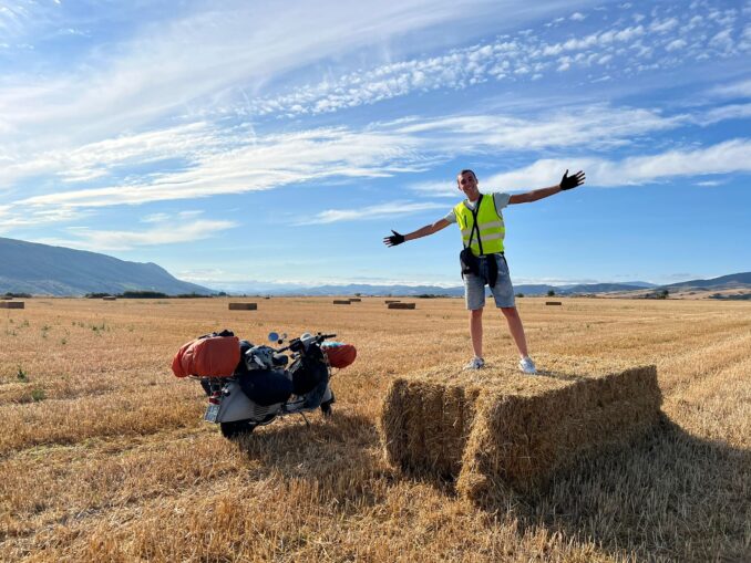 Dopo il giro d’Italia dell’anno scorso e la partecipazione, per la terza volta consecutiva, al raduno invernale dell’Elefantentreffen in Germania, dal 28 luglio al 30 agosto Samuele ha esplorato la Penisola iberica. «Insieme a me», racconta, «c’era Luca De Laurentiis, un amico della provincia di Chieti conosciuto su Facebook. Tutto è nato dopo aver visto che possedeva una Vespa del 1962 identica alla mia: gli ho chiesto informazioni a riguardo ed è nata un’amicizia solida. Per raggiungere San Damiano, si è dovuto fare due giorni di viaggio in più».
