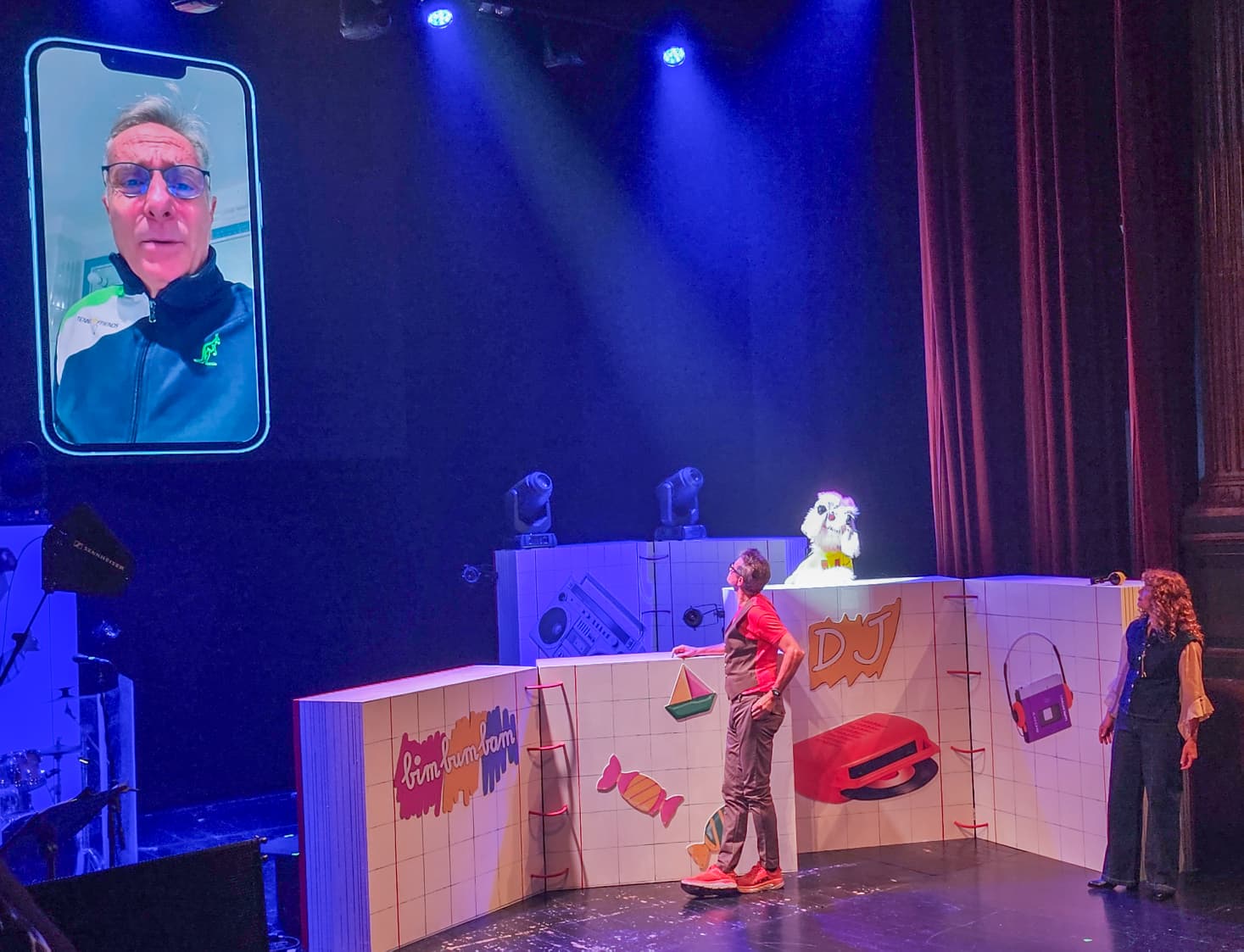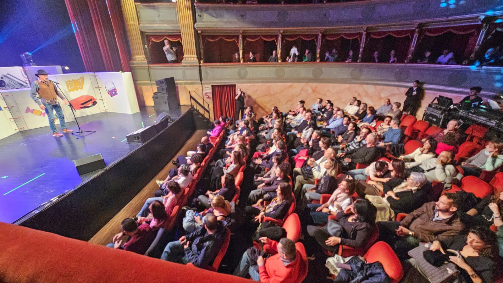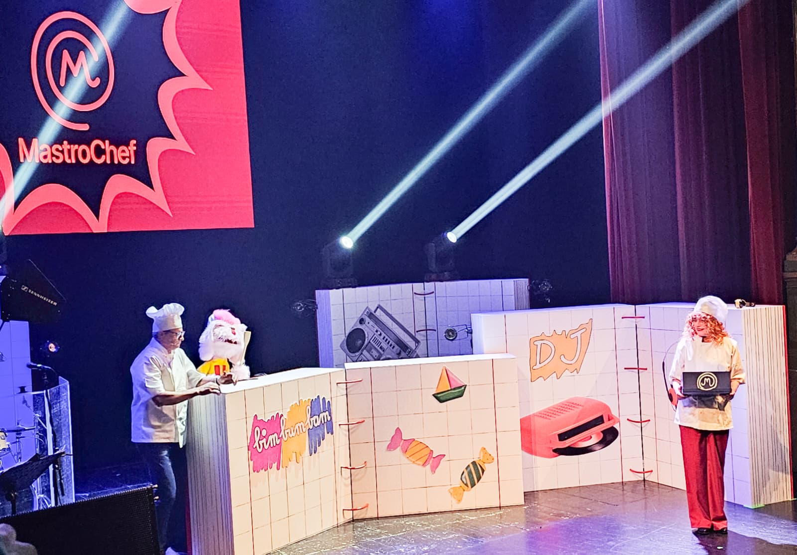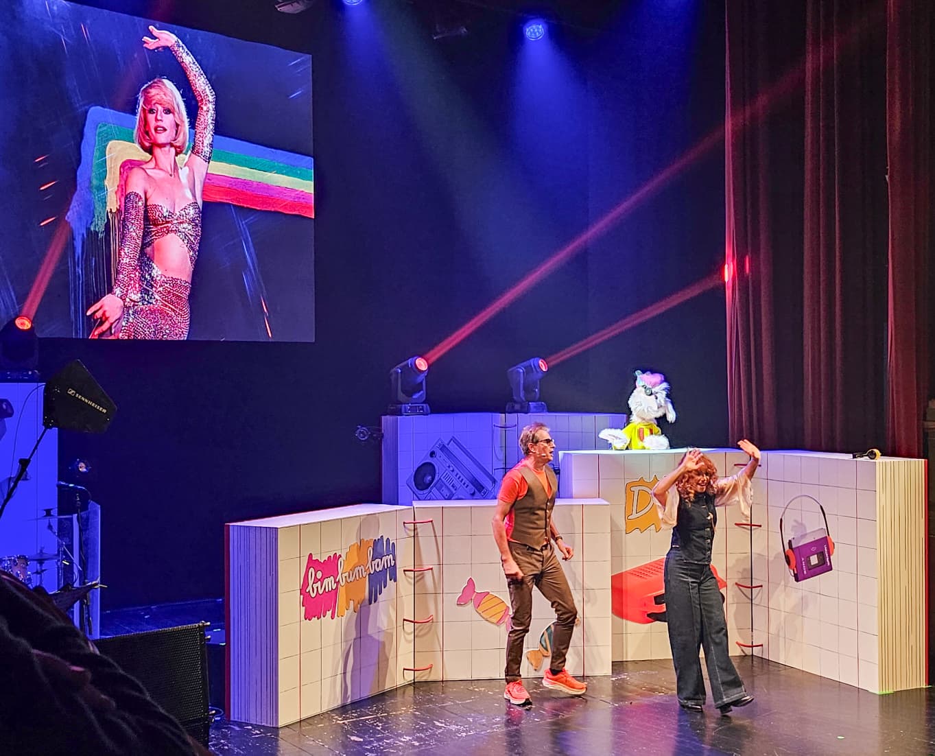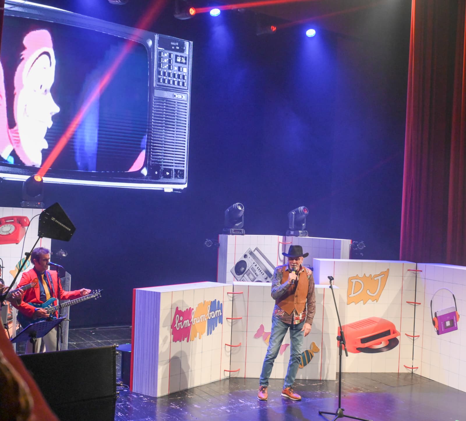 La scenografia, curata in ogni dettaglio, ha ricreato l’atmosfera dei pomeriggi di quell’epoca: una cameretta colorata, poster alle pareti, i cartoni animati proiettati sullo sfondo e un jukebox metaforico che “non funziona” perché il pubblico adulto, distratto dagli impegni quotidiani, ha smarrito la leggerezza del gioco.