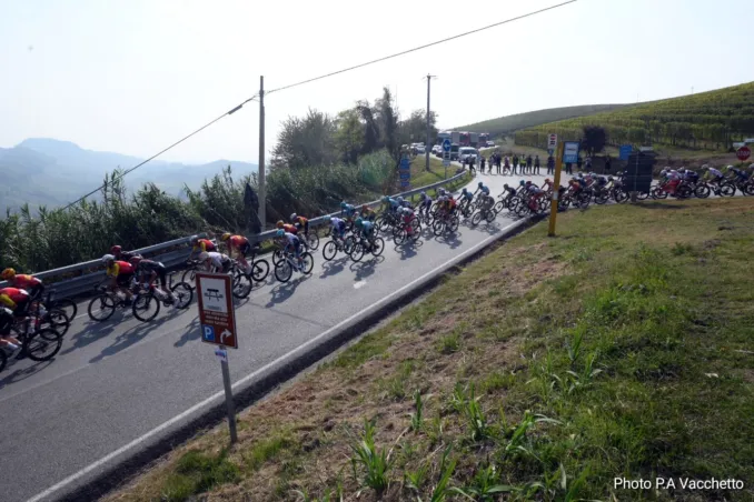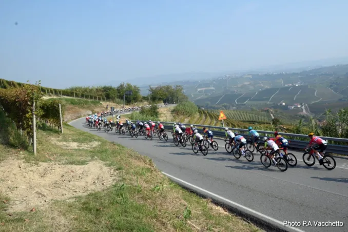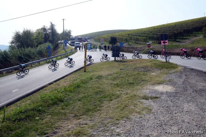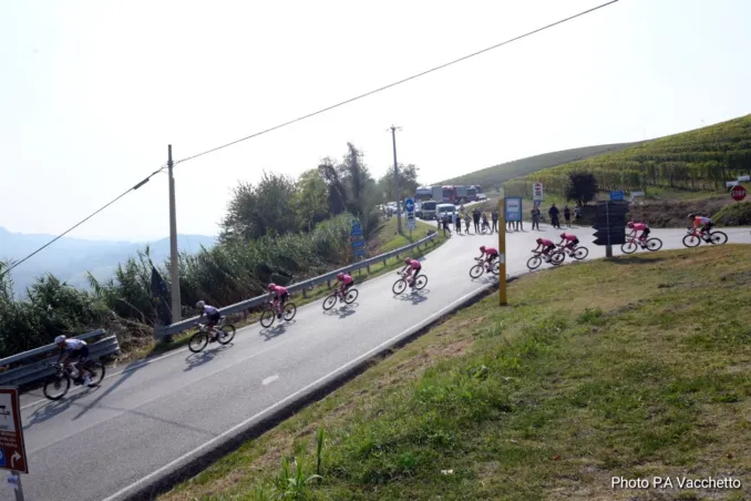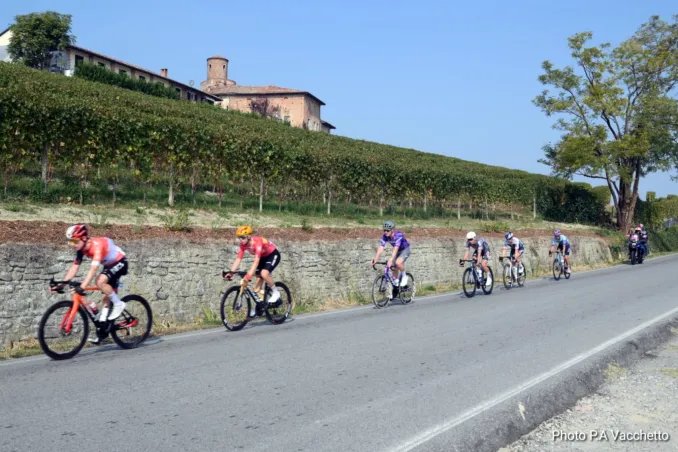 Un gruppetto di 7 corridori tenta la fuga a Barolo, dopo 60 chilometri di corsa.