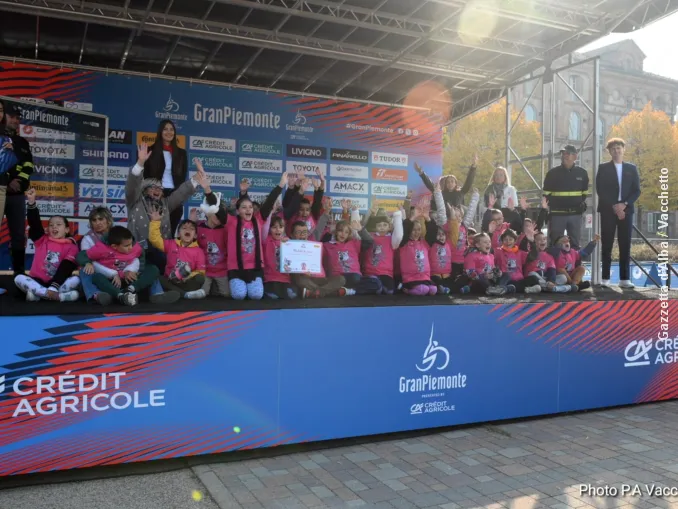 Il primo appuntamento del Gran Piemonte a Dogliani, sede di partenza della gara ciclistica internazionale, è stato dedicato ai bambini delle scuole che, in attesa dei corridori, sono stati premiati per la partecipazione al concorso di disegno.