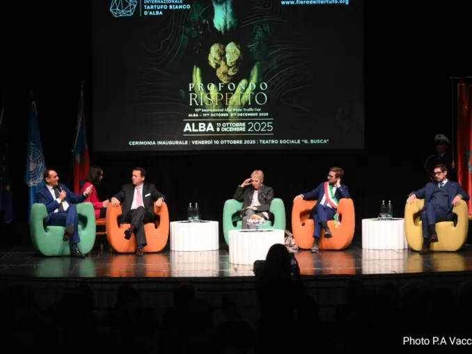“Ogni anno è importante, ma questa serata è storica”: così Stefano Mosca, direttore dell’ente Fiera di Alba, ha aperto la cerimonia d’inaugurazione dell’edizione 2025 della Fiera del tartufo.