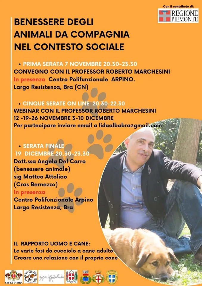 Il relatore della serata di apertura è il professor Roberto Marchesini, noto etologo e autorevole voce nel campo dell’interazione uomo-animale. La sua presenza garantisce contenuti scientifici aggiornati e pratici.