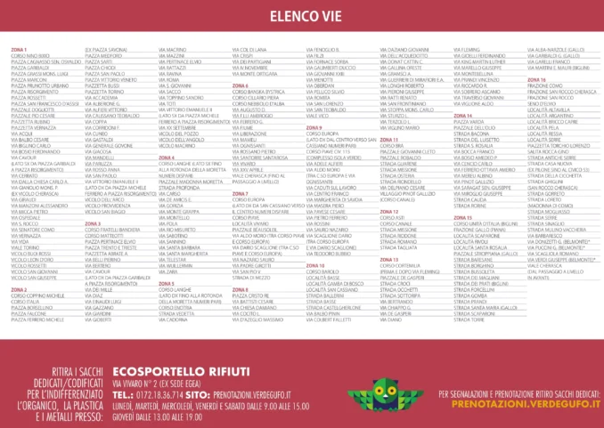 Anche il giorno dopo sono ancora lì, all’angolo tra via Corridoni e via Fratelli Ambrogio, a un passo da corso Coppino e piazza San Paolo. Oggi, martedì 11 novembre, ai sacchetti sono state aggiunte le fotocopie ingrandite del calendario e dell’elenco delle zone, assieme a una lettera in cui l’albese (anonimo) grida al mondo il suo sdegno per il servizio non eseguito.