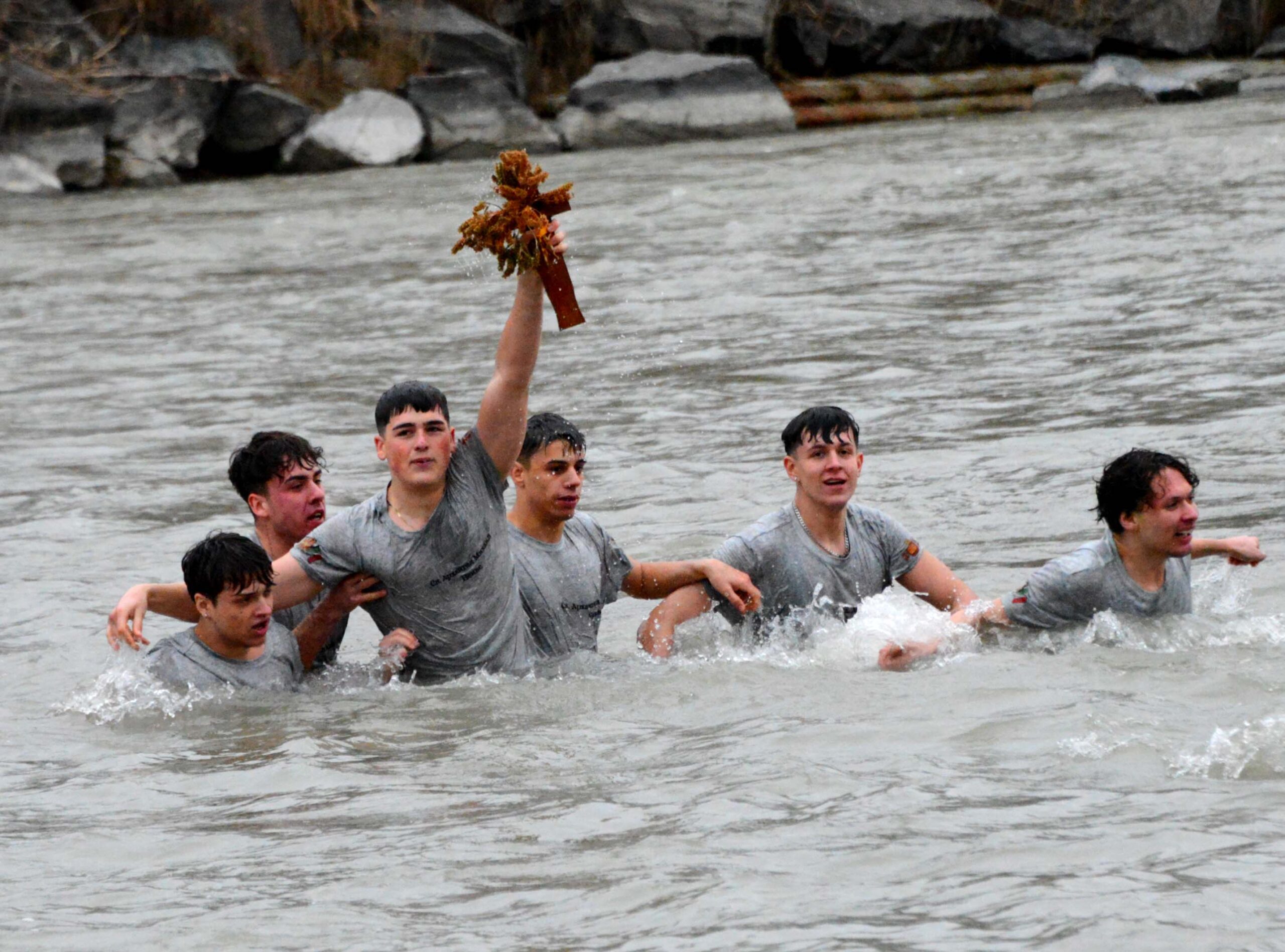 Poi, il momento più scenografico: viene lanciato un crocifisso nelle acque gelide. Il compito di chi vuole sfidare il freddo è recuperarlo: chi ce la farà – è una sfida che coinvolge soprattutto i giovani – lo potrà custodire a casa propria fino all’Epifania, anche in questo caso come simbolo di fortuna e salute per tutto l’anno.