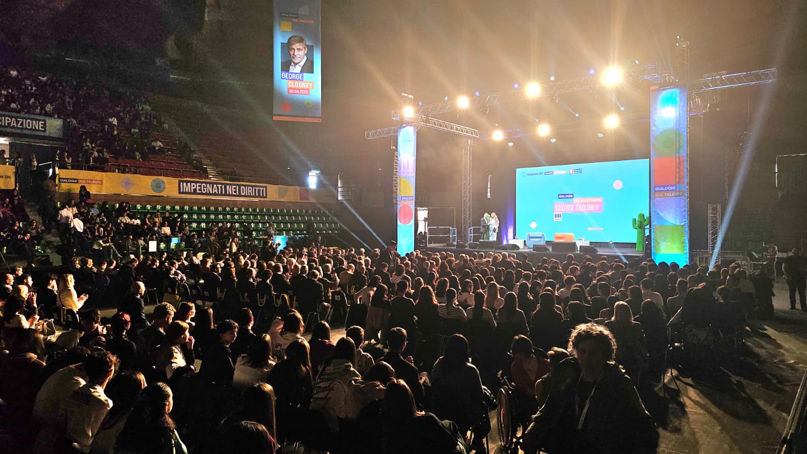 CUNEO – A Cuneo, davanti a una platea di studenti e rappresentanti del territorio, George Clooney ha partecipato ai “Dialoghi sul Talento”, il format di incontri promosso dalla Fondazione Crc per offrire alle giovani generazioni un confronto tra personalità di rilievo internazionale che negli anni scorsi ha portato in città ospiti d’eccezione, come Paolo Nespoli, Andrea Bocelli, Pep Guardiola Steffi Graf e Kerry Kennedy. Ha aperto il suo intervento in italiano, rompendo subito il ghiaccio: “Sono già stato a Cuneo… in moto”. Un esordio informale per un incontro che ha toccato temi cruciali come libertà di stampa, diritti umani, democrazia e nuove sfide legate all’intelligenza artificiale.