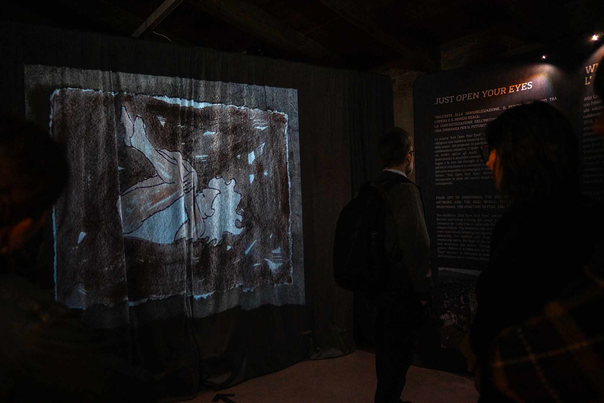 Dopo la proiezione inaugurale, il pubblico ha potuto visitare la mostra all’interno del castello. L’allestimento accompagna il visitatore in un’esperienza intensa e coinvolgente, costruita come un vero e proprio viaggio emotivo.