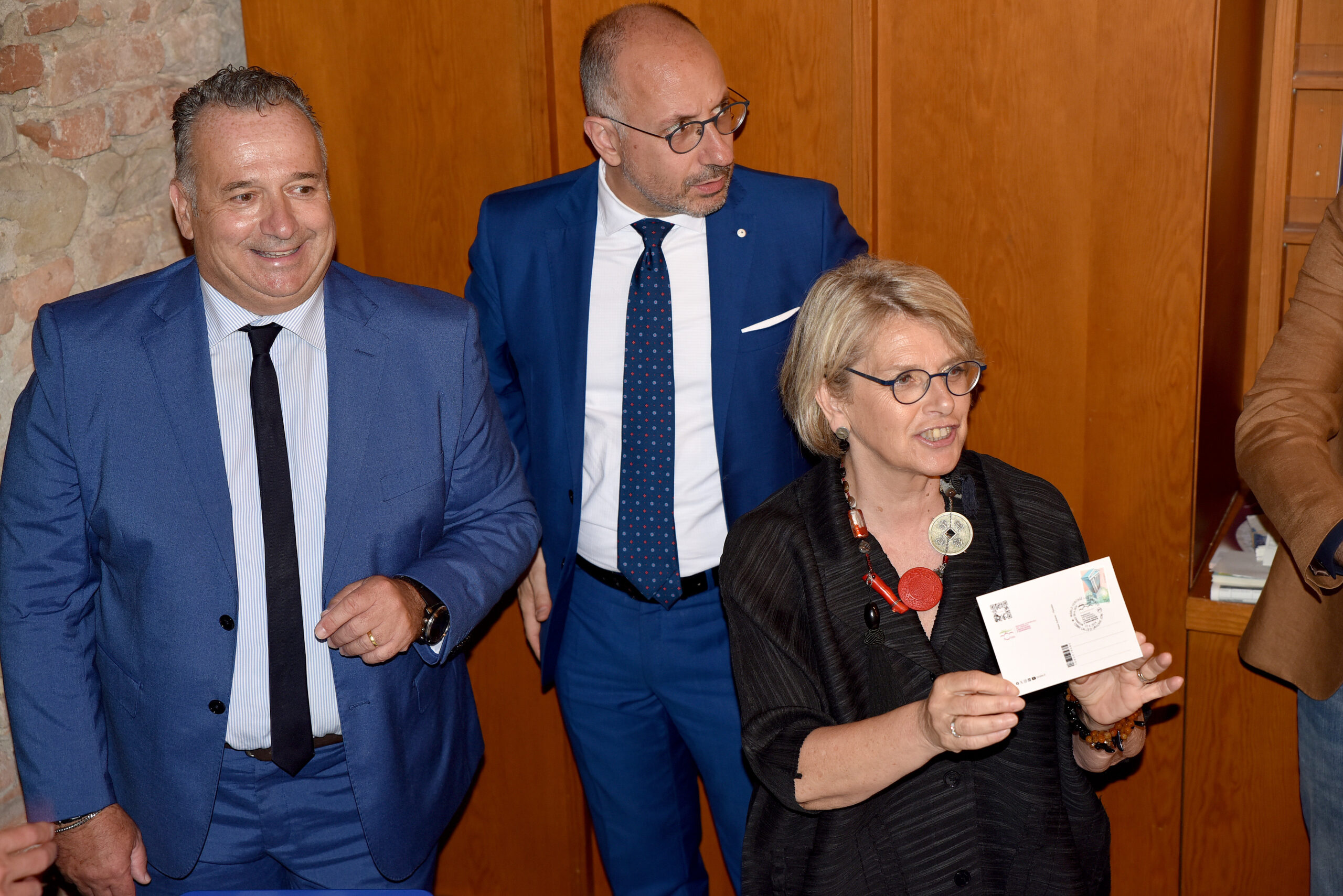 Annullo filatelico con Giovanna Quaglia e direttore PT Alba